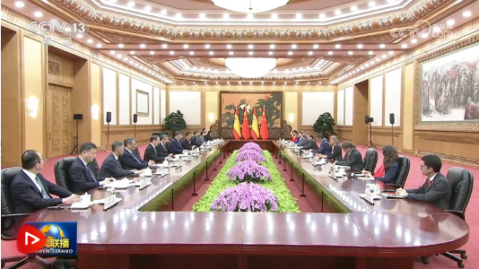央视网讯 4月14日上午,国家主席习近平在北京人民大会堂会见来华进行正式访问的西班牙首相桑切斯。