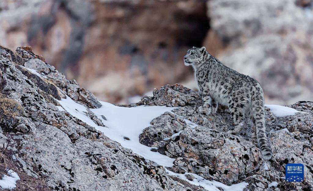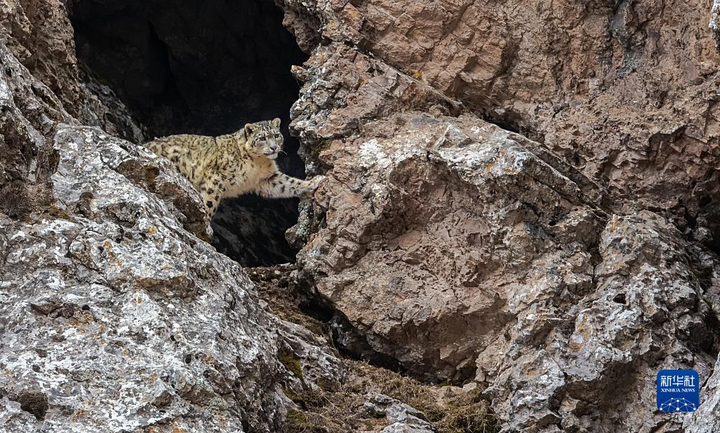 这是在祁连山国家公园青海片区拍摄的雪豹(资料照片)。