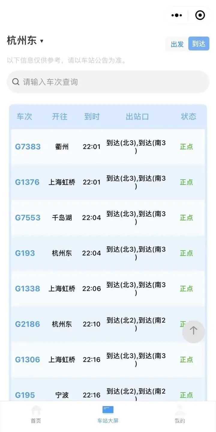 我们也查询到,2月26日晚上21点30分后途经杭州火车东站的大部分高铁列车已显示可正点到达。