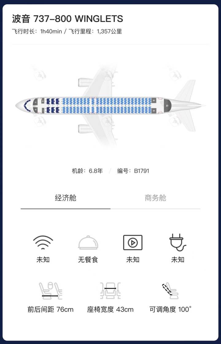 该客机是一架B737-800NG客机,注册号为B1791,机龄6.8年。