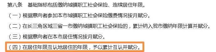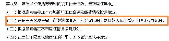 值得注意的是,《办法》首次提出“凡是在长三角区域三省一市(江苏、浙江、安徽、上海)缴纳城镇职工社会保险的,都能累计纳入南京市缴纳年限计算并赋分“。