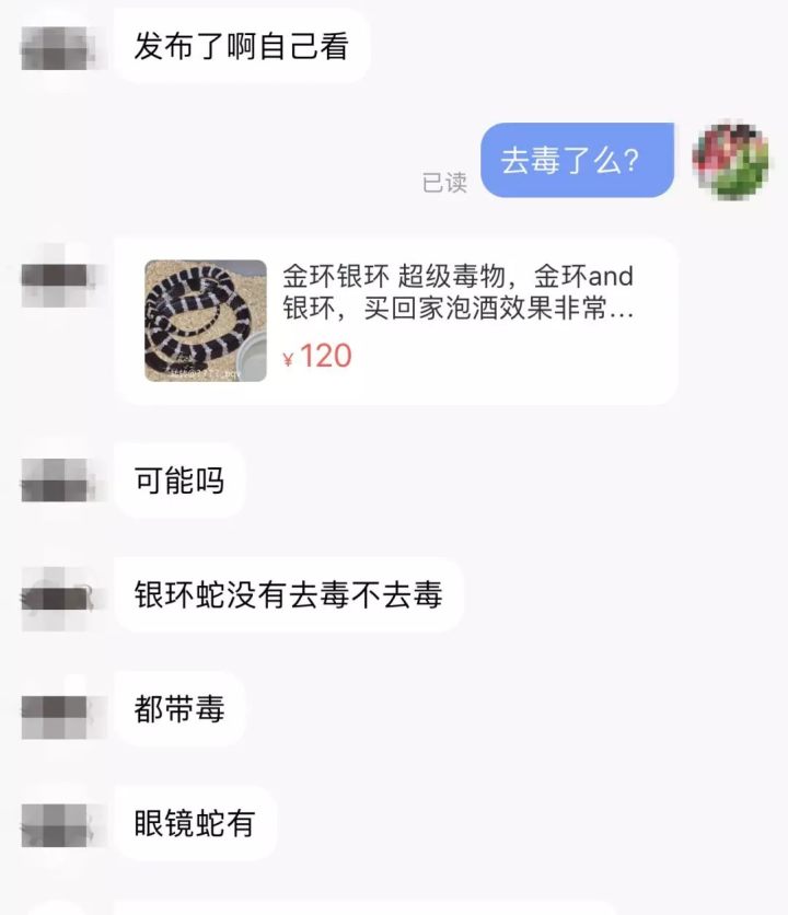 2018年6月20日,女孩依依通过转转平台与卖家邵某联系,询问邵某是否出售银环蛇,欲购买活的银环蛇。