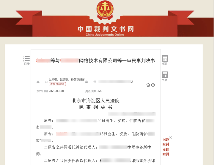 近日,北京市海淀区人民法院公布了这起生命权、健康权、身体权纠纷案件的民事一审判决书。