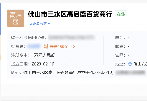 佛山市三水区高启盛百货商行成立于2023-02-10,注册资本为1万元人民币,所属行业为零售业。