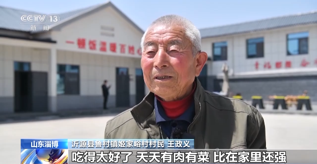 山东省淄博市沂源县鲁村镇姬家峪村村民 王政义:去年俺村建了一个老年食堂,我就去吃了,吃得太好了,天天有肉有菜,比在家里还强。