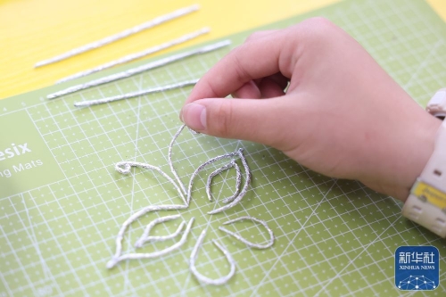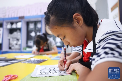 ↑6月9日,湖南省长沙市朝阳小学学生在特色美育课上制作有苗族银饰特色的手工作品。