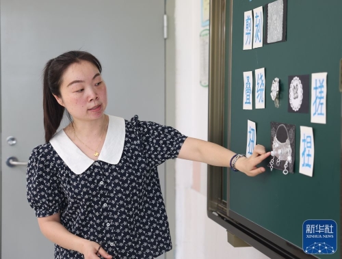 ↑6月9日,湖南省长沙市朝阳小学王晓风老师在特色美育课上向学生们介绍制作技艺。
