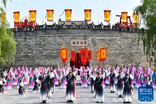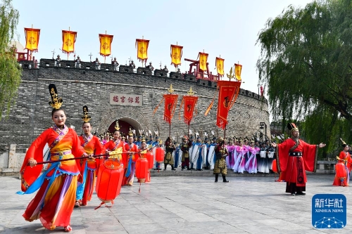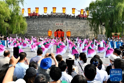 ↑6月27日,在曲阜孔庙,工作人员在开城仪式上表演。