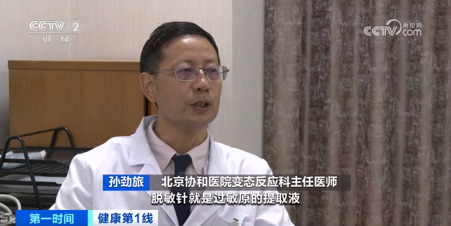 北京协和医院变态反应科主任医师 孙劲旅:脱敏针就是过敏原的提取液,比如尘螨和狗毛的提取液。从低剂量到高剂量慢慢打,让他产生免疫耐受,这样就达到脱敏治疗的目的。大概要3到5年的治疗时间,脱敏治疗的有效率在70%左右。