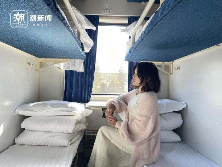 李欣意在硬卧车厢拍照留念。潮新闻记者 徐婷 摄