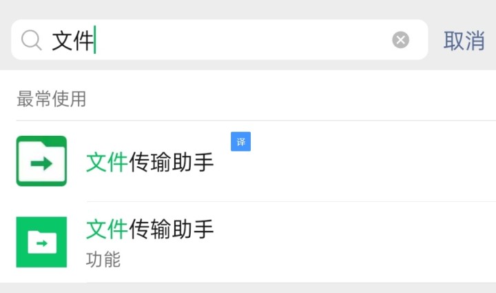 在实际操作中,我们在用传输助手功能给自己传文件的时候,有时因为一下找不到,会在搜索框里输入:文件,那么,有可能会错认。