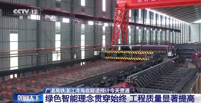 绿色环保的同时,智能化也大大提高了建设效率。在这个混凝土预制梁生产车间,通过使用人工智能和物联网等信息技术,可实现生产要素全方位信息化管控。目前广湛高铁建设已获得43项专利。
