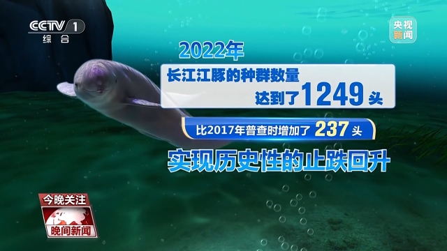 江豚的生存状况,是长江生态环境质量的“晴雨表”,近几十年,由于生态环境恶化,长江江豚的数量一度呈下降趋势。随着十年禁渔的实施,长江鱼类资源开始恢复,江豚的食物变多了,数量也开始有所增长。2022年,长江江豚的种群数量达到了1249头,比2017年普查时增加了237头,实现历史性的止跌回升。