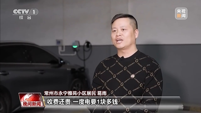 江苏省常州市永宁雅苑小区居民 葛雨:以前充电真的挺麻烦的,收费还贵,一度电要1块多,每次在外边充完还得付停车费。现在车库里装了充电桩,方便多了,而且晚上充电只要3毛多。