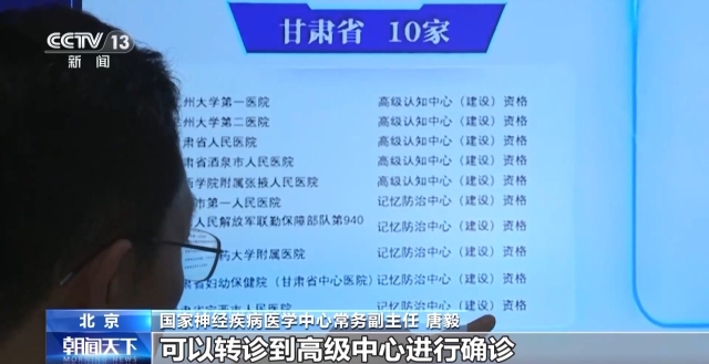 国家神经疾病医学中心常务副主任 唐毅:比如说一个老年认知障碍的患者,家人也发现他的认知功能有减退,就可以在认知地图上进行检索,找到离他家最近的医院,进行一些初步筛查。如果他的病情比较复杂,可以转诊到高级中心进行确诊,以及制定治疗方案。