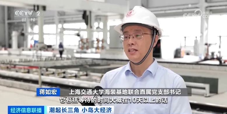 上海交通大学海装基地联合直属党支部书记 蒋如宏:原先可能(生产)一个小组立,包括等待的时间在10天以上。我们产线,基于它的数据库,一天就可以生产一个小组立。我们能够直接服务在岛上的四大央企,直接支撑相关企业的生产。