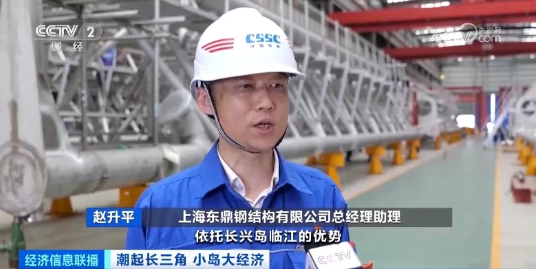 上海东鼎钢结构有限公司总经理助理 赵升平:依托长兴岛临江的优势,给我们公司带来了一个飞跃式发展的机会,产业链集聚的优势和良好的营商环境,也给我们带来了很大的发展机遇。