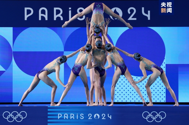 △当地时间2024年8月6日,法国,巴黎奥运会花样游泳团体自由自选。