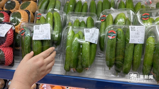 在杭州一连锁超市里,记者发现,5根手掌长的水果黄瓜标价17元,产地来自海南。当日来的新鲜菜黄瓜标价接近9元/斤,次新鲜的菜黄瓜也要近6元/斤,产地主要是山东寿光和青州等地。