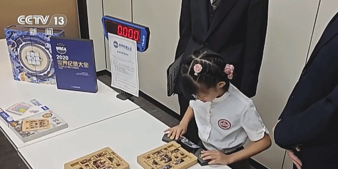 9月13日,在福建厦门一处世界纪录认证官方指定挑战地点,钟丹柠完成“最快时间解4×5华容道”诸葛羽扇布局的挑战,创立该项目的世界纪录。