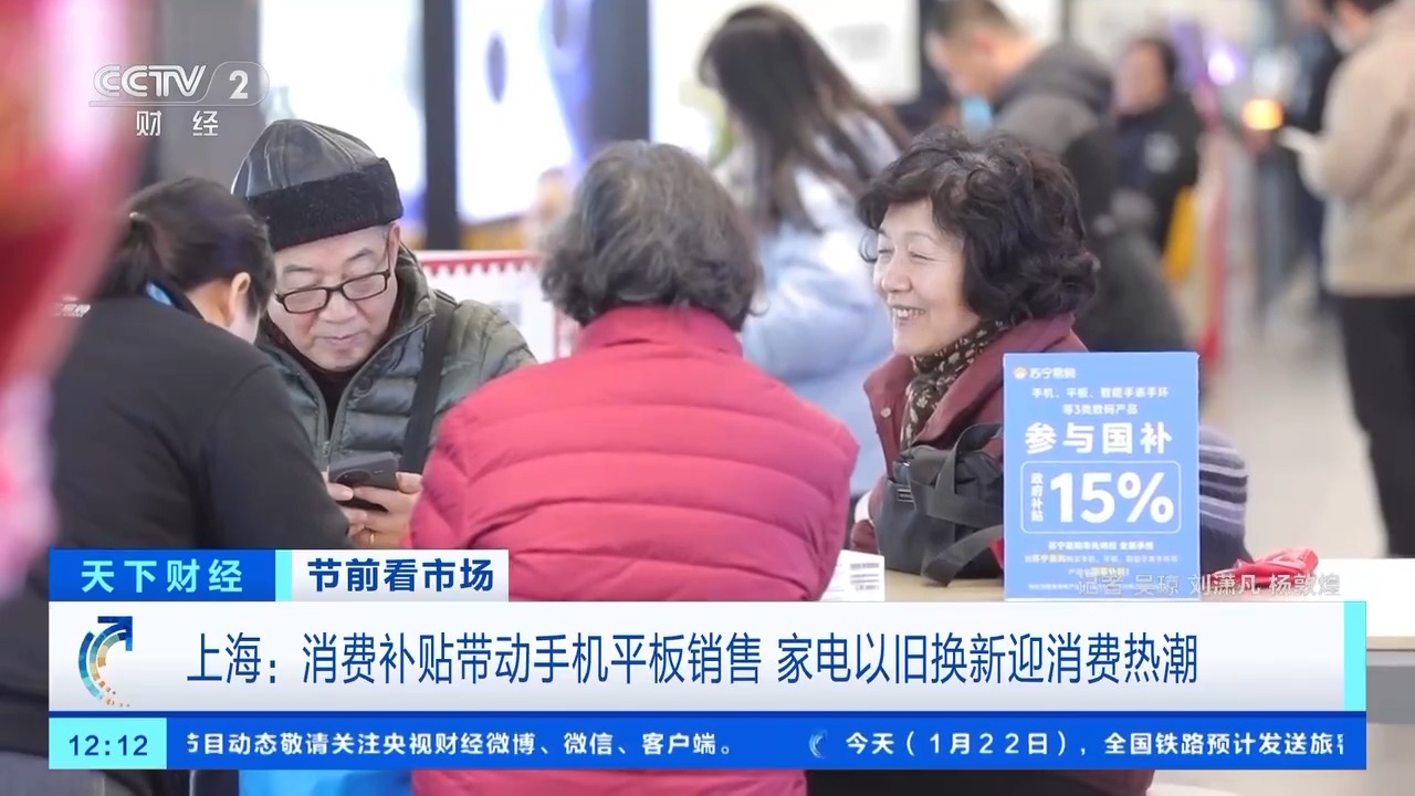 最近几天,多地发布新一轮手机、平板、智能手表(手环)购新补贴及家电“以旧换新”补贴细则,临近春节,“国补”政策叠加门店优惠,进一步激发电子产品消费热情。