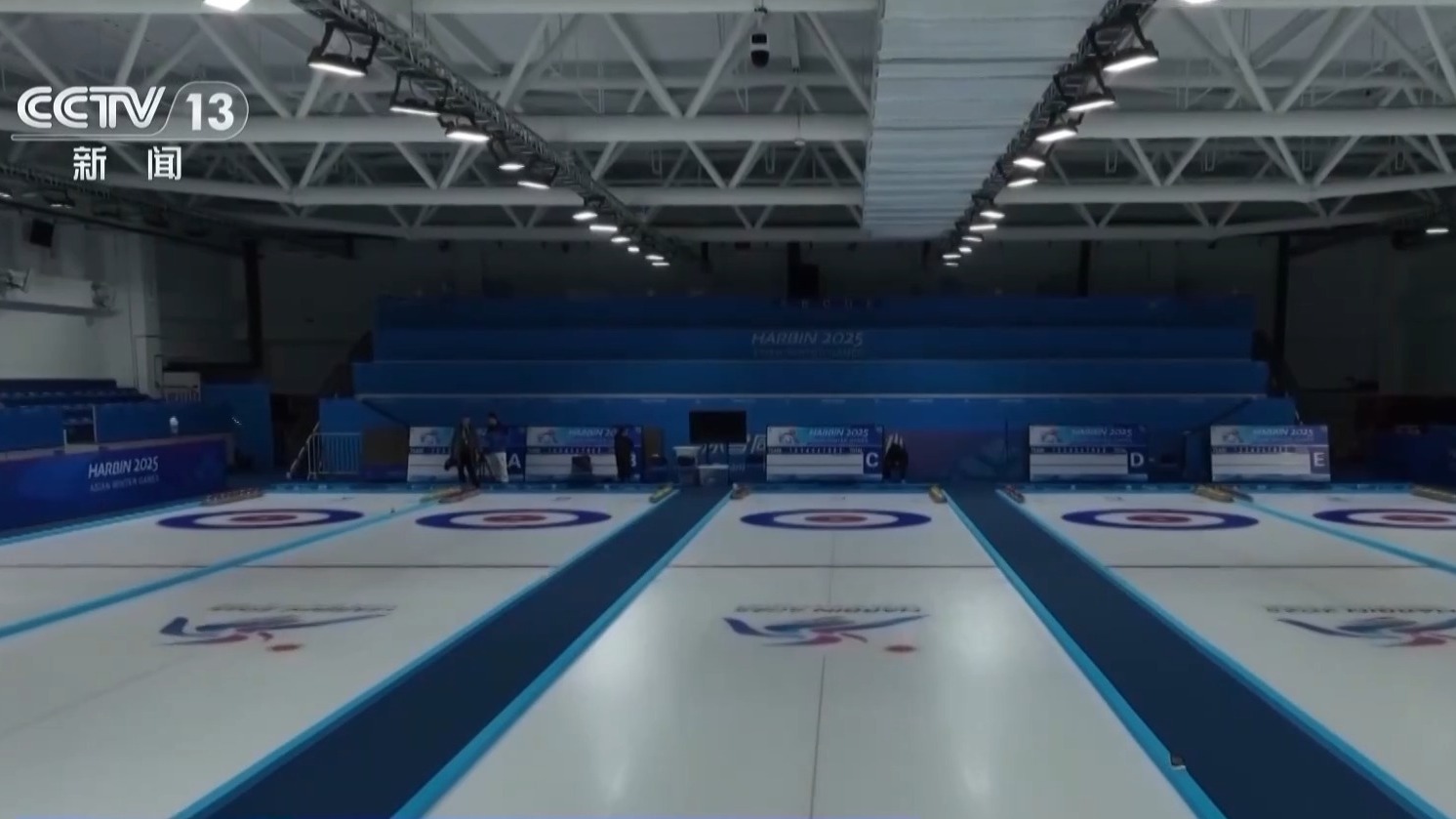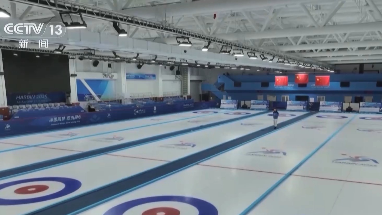 总台央视记者 郑怡哲:行走在冰壶比赛的冰面上,依然可以看到原来场馆的主体结构,但是冰壶馆的内部空间则是进行了全面的优化。