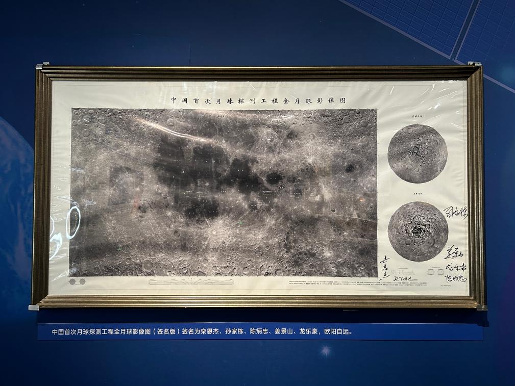 这是展览现场展出的中国首次月球探测工程全月球影像图(签名版)。新华社记者刘祯 摄