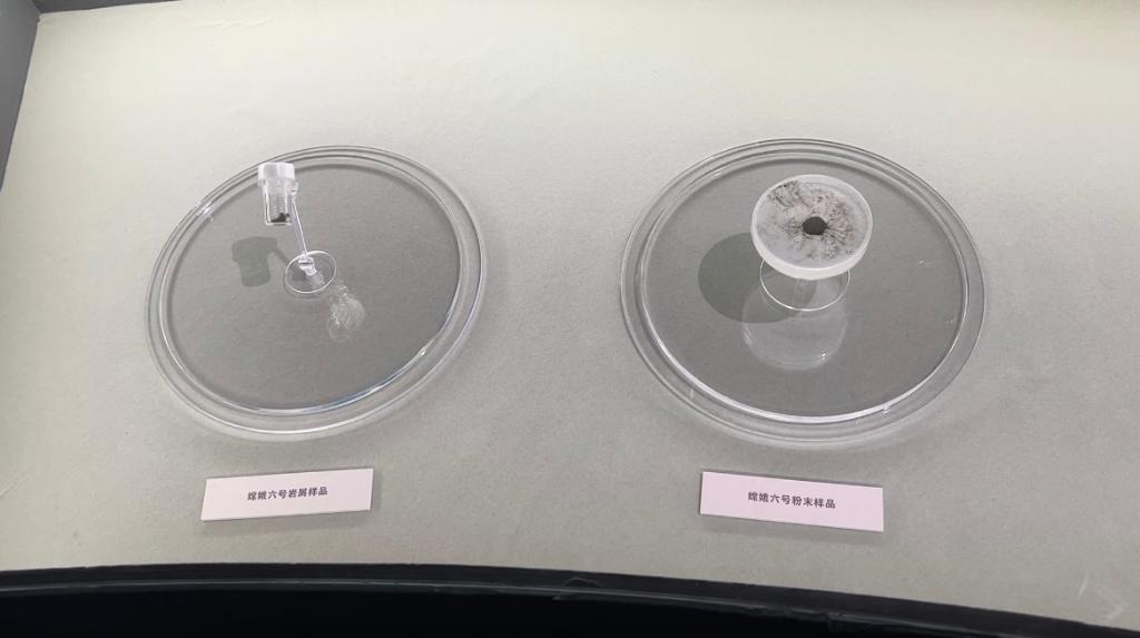 这是展览现场展出的嫦娥六号岩屑样品和嫦娥六号粉末样品。新华社记者刘祯 摄