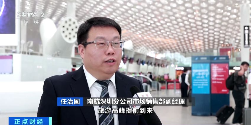 南航深圳分公司市场销售部副经理 任治国:受香港公众假期和“五一”节影响,旅游高峰提前到来,出行的热度会持续到5月,热门目的地包括重庆、上海、海口、北京、昆明、哈尔滨等。