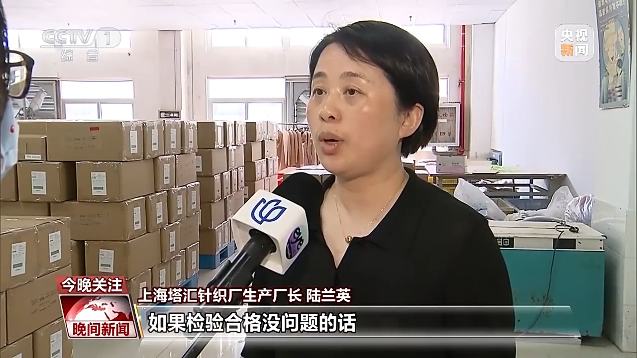 上海塔汇针织厂生产厂长 陆兰英:客人其实也很着急,已经订好5月17日的集装箱,如果检验合格没问题的话,5月17日就开始陆续出运了。