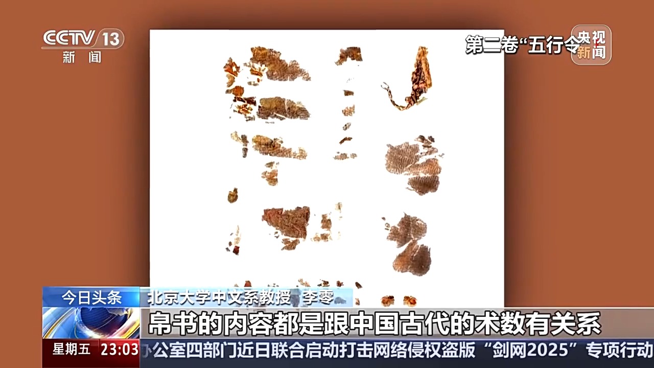 北京大学中文系教授 李零:到目前为止,集中出土帛书只有两次,一次是马王堆帛书,一次是子弹库帛书。马王堆帛书晚,是西汉帛书。子弹库帛书是现在最早的唯一的战国帛书,它们的年代大概在公元前300年前后。帛书的内容都是跟中国古代的术数有关系,是属于术数类的文献。