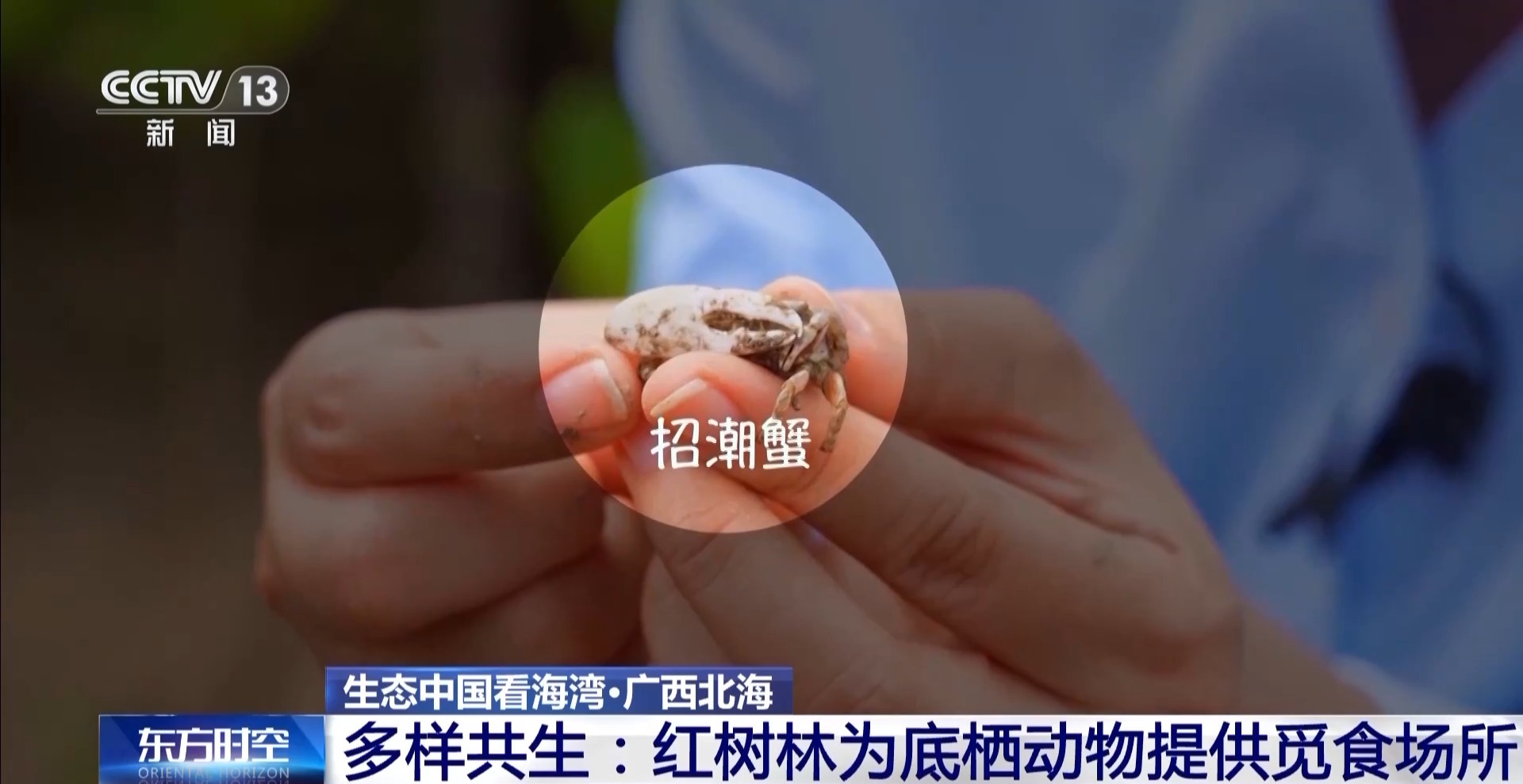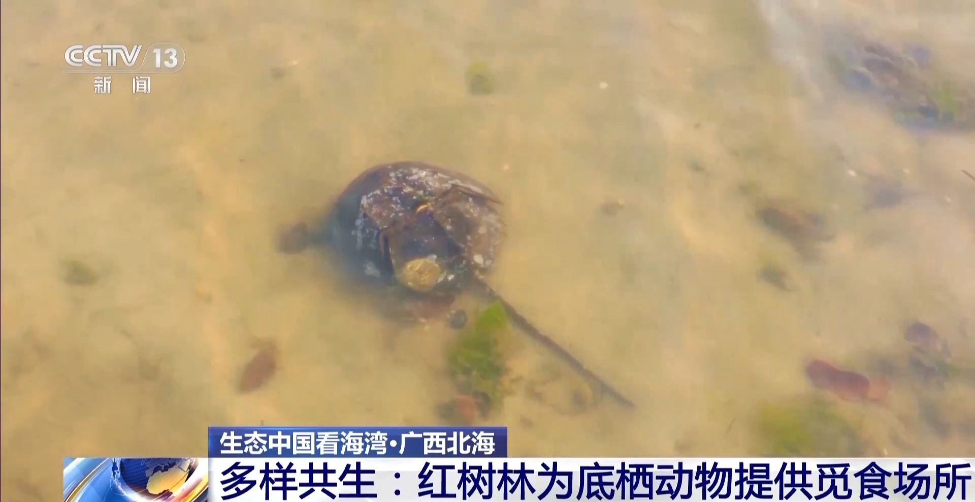这个看起来几乎静止不动的小家伙叫“中国鲎”,这是一种古老的生物,体型不足一个巴掌大,早在三亿多年前就存活在地球上。红树林为许多动物提供了适宜的居住环境,守住这片珍贵的资源禀赋,现在,广西近60%的红树林区域已纳入自然保护地管理。“湿地课堂”研学等形式,也让人们与红树林有了更亲密接触。