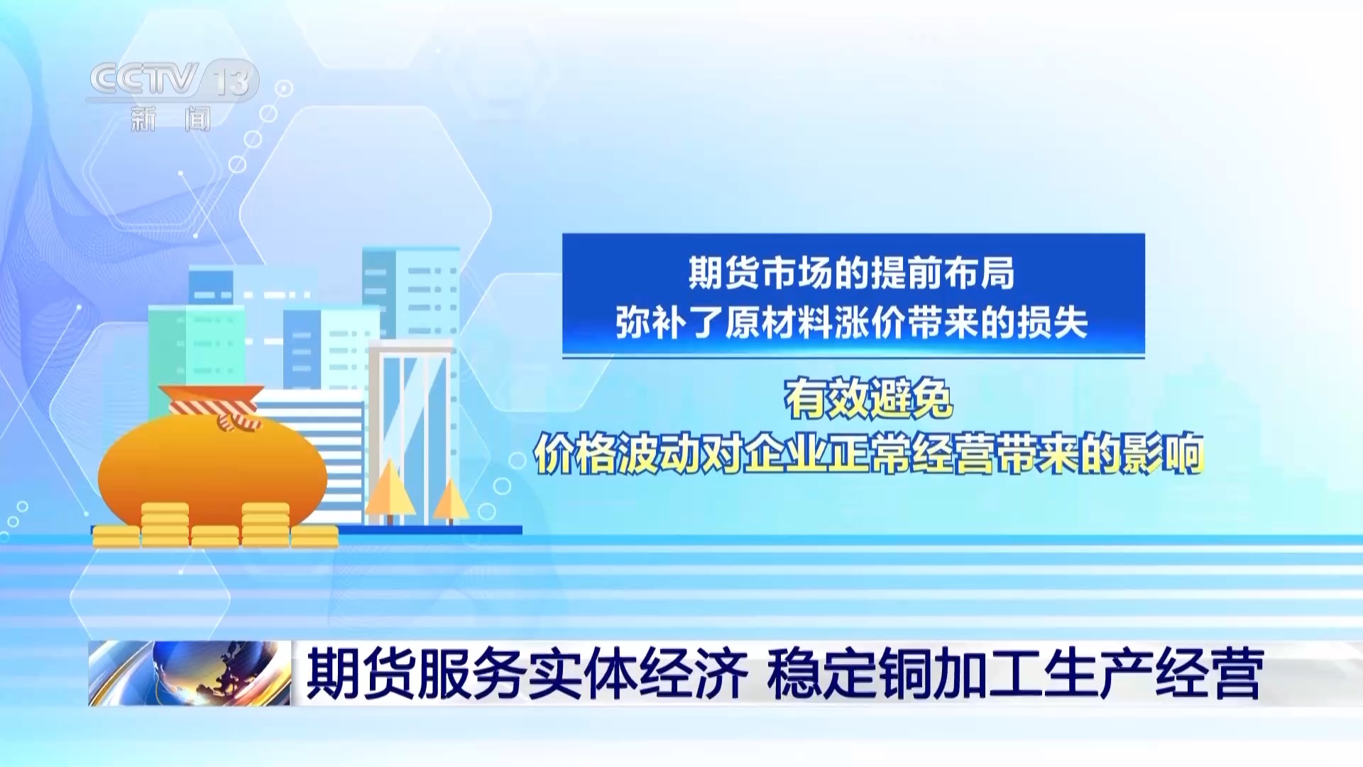 金田铜业战略与市场总监 汤先朋:这样我们原材料采购成本较订单下达时增加了5000元每吨,100吨也就是50万元。但期货合约又盈利5000元每吨,100吨也是50万元,正好对冲了现货的亏损。