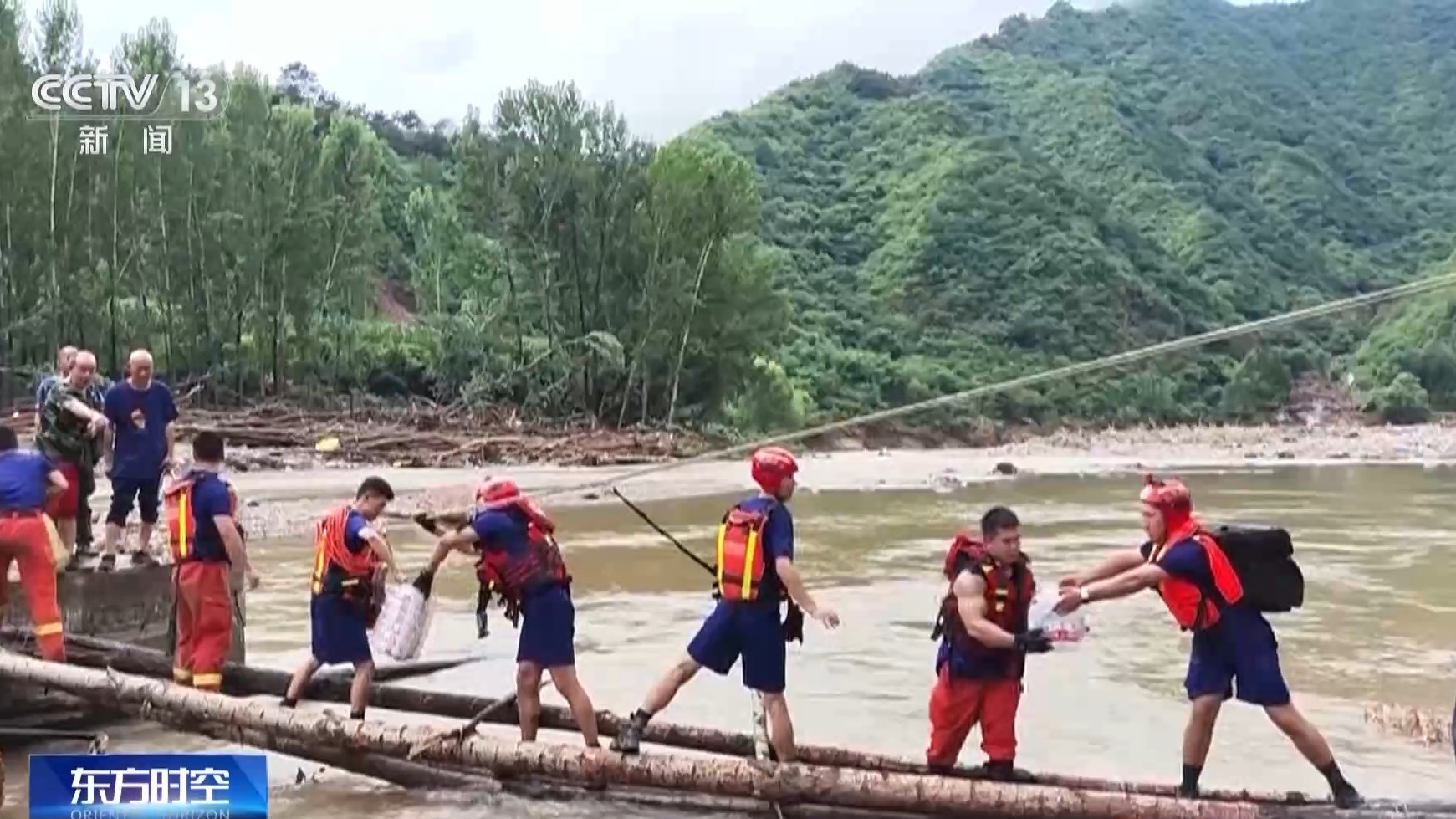 怀柔区消防救援支队杨宋消防站副站长 李陈才:刚来的时候,整个道路都中断了,28日6点半左右,过来之后我们看了下水文条件,可以横渡搭绳索。
