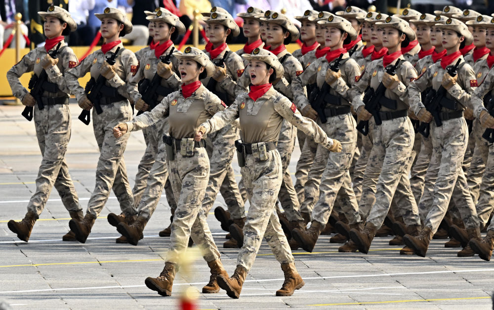 民兵方队全部由女民兵组成。这是民兵首次亮相以纪念抗战胜利为主题的阅兵活动。