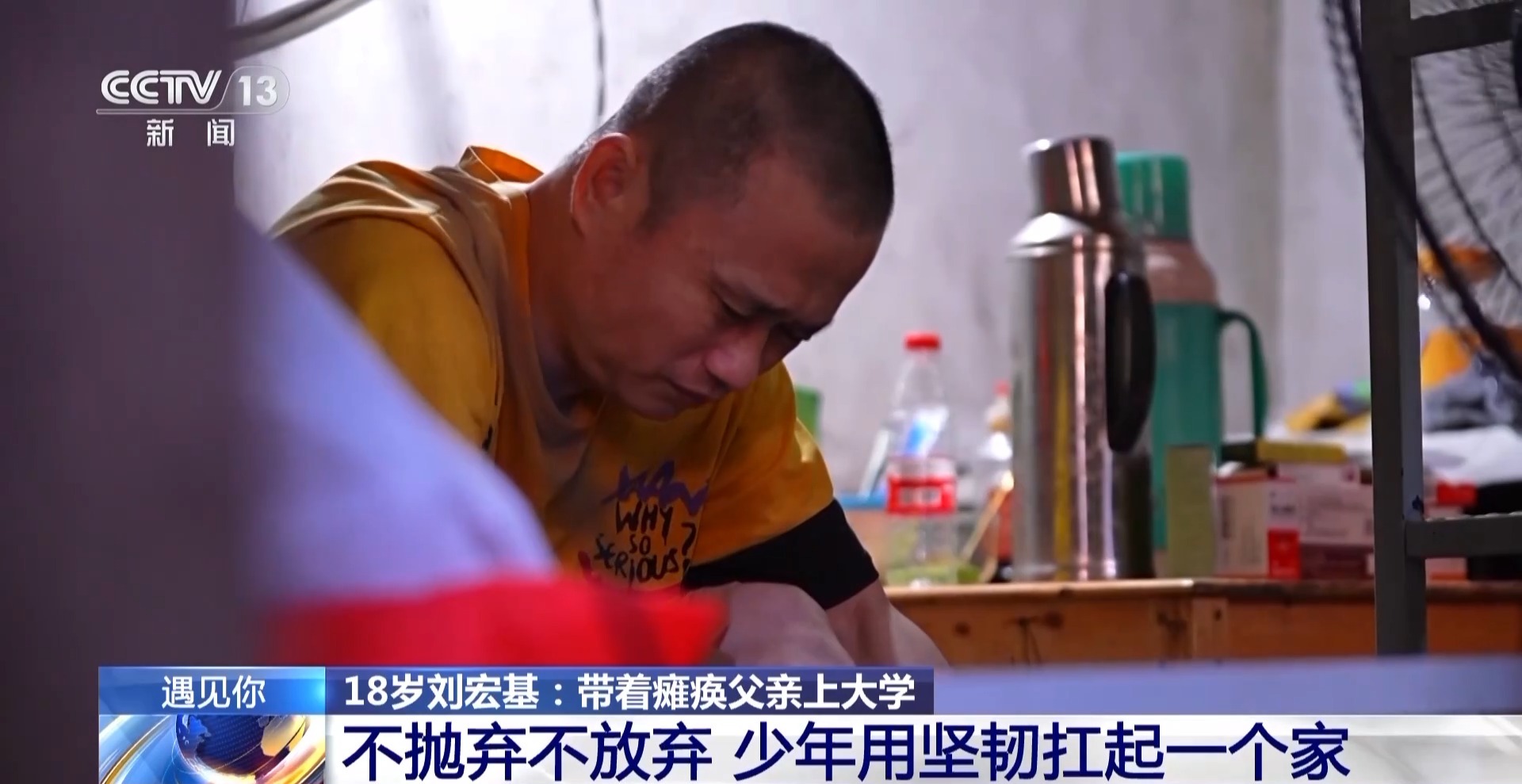 刘宏基:当时我想就是我考上了,我也要带着我爸去上大学,我跟他关系特别亲,而且我觉得这是我的责任,我不可能说自己有一点成就,或者上大学了,就把爸爸送到养老院里面去不管不顾,因为我爸爸以前都是光顾着为了我,我没有为他做点什么,那我就做自己能做的给他就行了。
