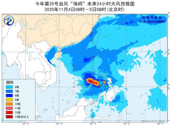 中央气象台11月4日6时继续发布台风预报: