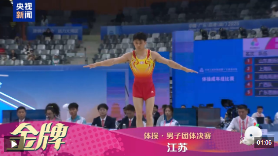 昨晚,体操男子团体决赛,江苏队获得金牌,其中06年小将洪延明表现出色。他曾在今年的体操世锦赛鞍马决赛中获得冠军,是中国体操的一名新星。