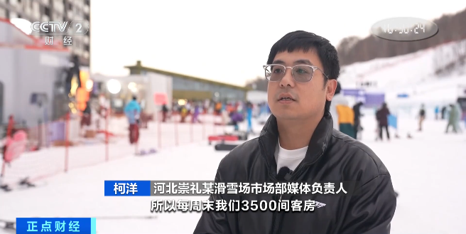 河北崇礼某滑雪场市场部媒体负责人 柯洋:最近有一系列的赛事,每周末我们的3500间客房基本已预订满,可能要持续到12月底。
