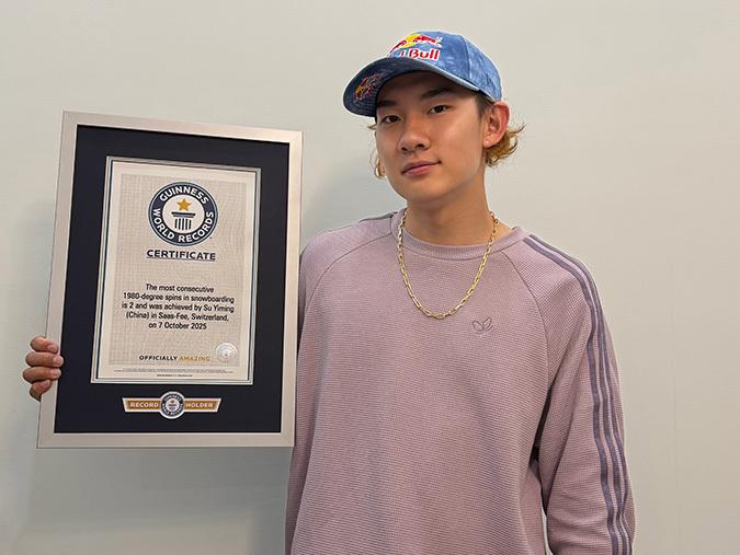 12月25日,吉尼斯世界纪录官方社交媒体发布消息称,中国单板滑雪运动员苏翊鸣在今年10月7日完成的“背靠背1980”动作官方认证成功,确认他创造了“一次连贯滑行内完成单板滑雪1980度转体次数最多”的吉尼斯世界纪录。