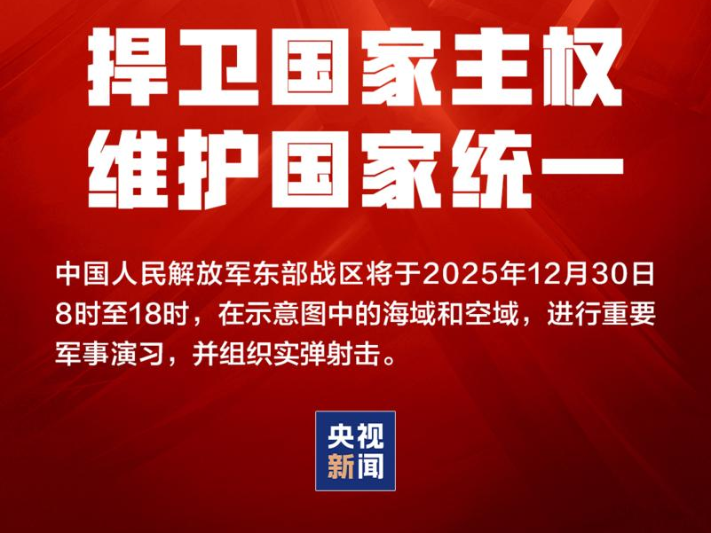 今日8时至18时,中国人民解放军东部战区将在图中海域和空域,进行重要军事演习,并组织实弹射击。中国人民解放军打“独”促统决不手软,将持续组织反分裂反干涉行动,坚决维护国家主权、统一、领土完整。