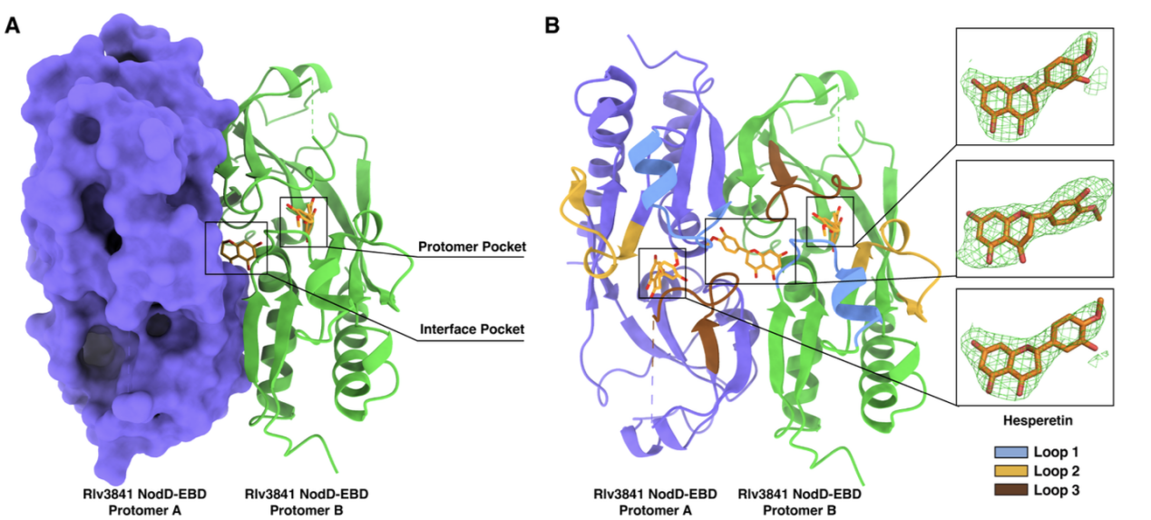 △豌豆根瘤菌NodD蛋白与橙皮素复合物的结构示意图