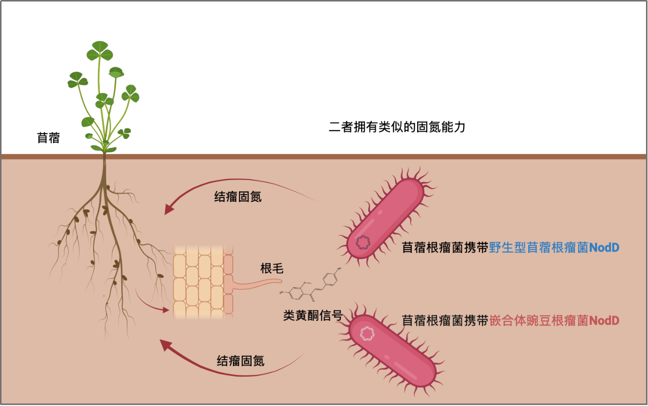 进一步研究发现,将苜蓿根瘤菌NodD1蛋白中负责信号识别激活的关键氨基酸,“移植”到豌豆根瘤菌NodD上后,包含改造的豌豆根瘤菌NodD的苜蓿根瘤菌竟能成功被苜蓿发出的类黄酮信号所触发,并展现出与野生型苜蓿根瘤菌相似的固氮能力。这个精巧的“分子嫁接”实验,以最直接的方式证明:正是NodD蛋白上这几个位置的氨基酸,如同锁芯中的关键齿纹,决定了共生伙伴识别的特异性。