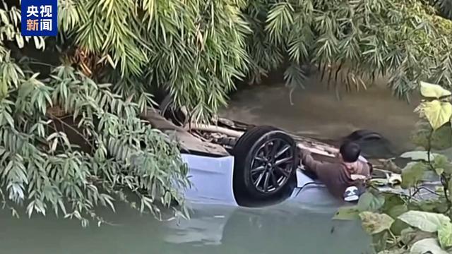 近日,在四川乐山市高新区泊滩村,一辆白色汽车路过时不慎翻入堰塘中,司机被困车内,情况危急。村民梁杰发现后,毫不犹豫跳入水中展开救援。