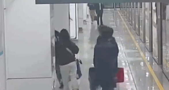 地铁小哥拖行李一路狂奔