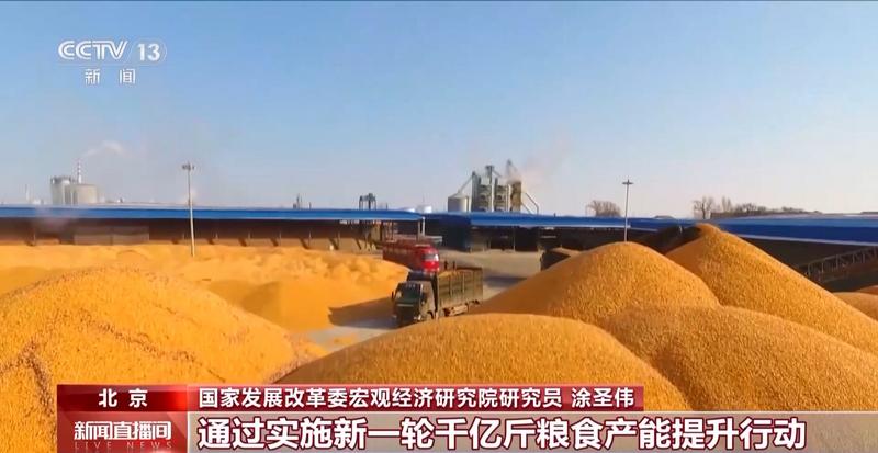 国家发展改革委宏观经济研究院研究员 涂圣伟:这些年,通过实施新一轮千亿斤粮食产能提升行动,我国粮食产能是在不断提升的,要达到这一目标我们有基础。