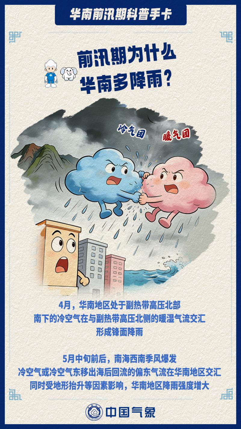 据国家气候中心消息,2026年华南前汛期已于4月3日在福建首先开启,较常年(4月9日)偏早6天。