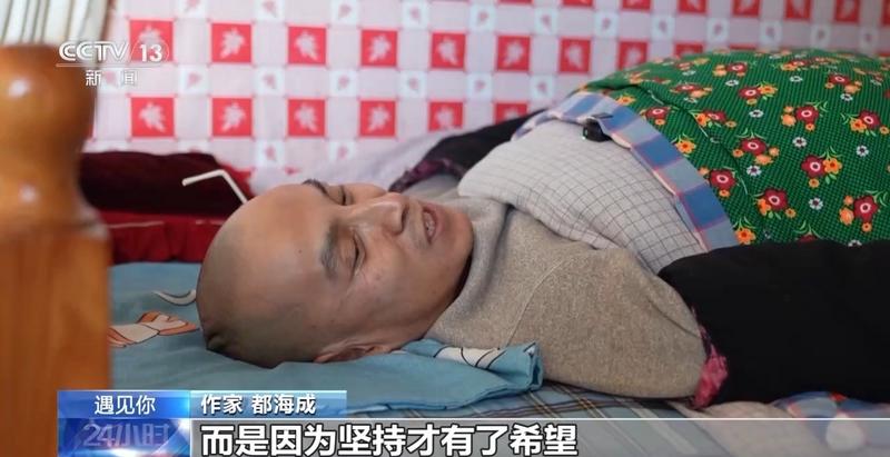 作家 都海成:人为自己的梦想奋斗是最幸福的,我每天躺在床上不能动,但我每天为我的梦想,为我的作品在奋斗着,我幸福着呢。