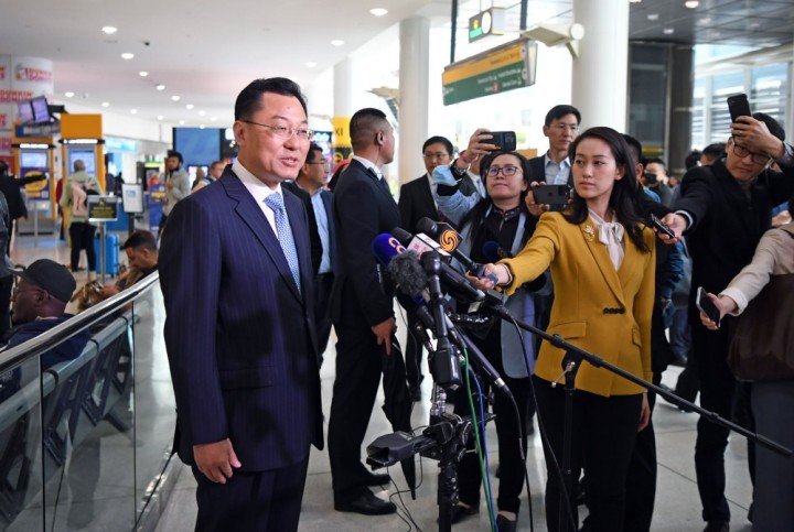 5月23日,中国新任驻美大使谢锋抵美履新。在纽约机场,谢锋与在场的中外媒体及各界人士交流互动。图自中国驻美国大使馆网站