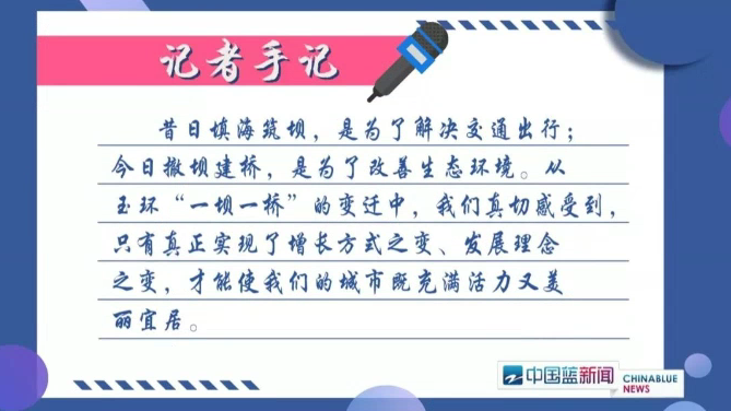 玉环市交通运输局局长王庆飞说:“撤坝建挢已不只是简单的交通方式的改变,是对海湾生态环境的恢复和改善,更是为了崇尚自然、回归生态, 是一种经济增长方式的转变。”